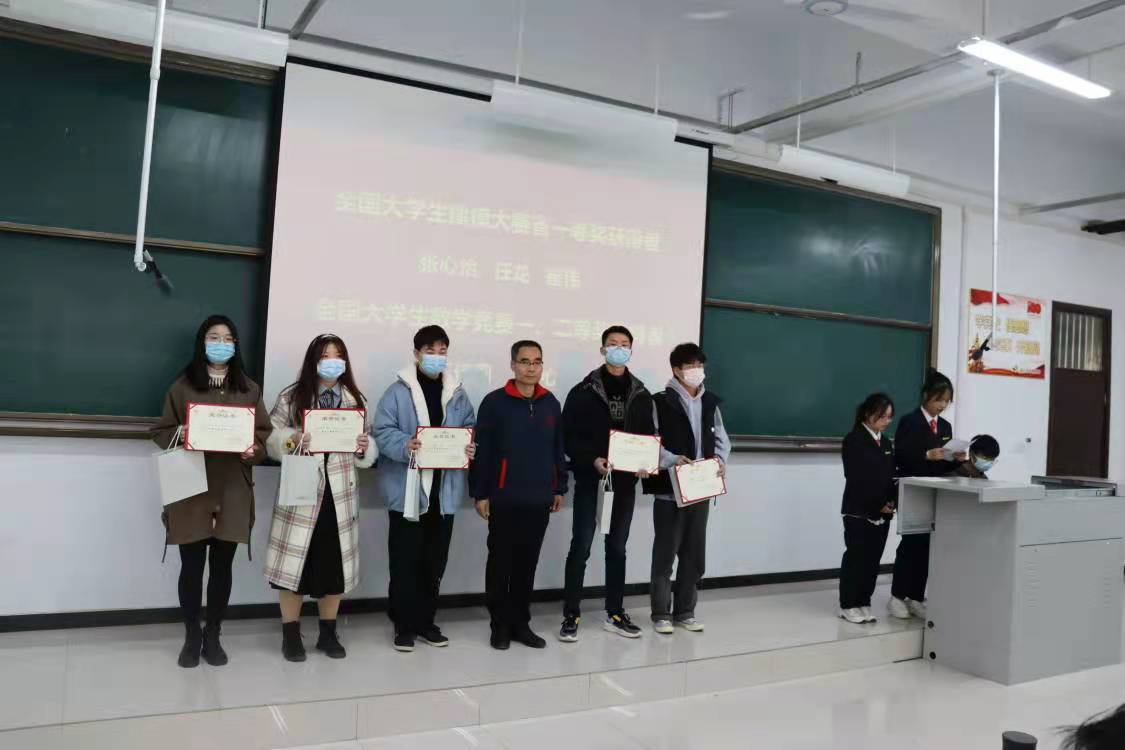 接着,学院直属党支部书记陶金仓同志宣布了表彰决定,授予在全国数学大赛和全国数学建模大赛中表现突出的任龙、崔伟、张心怡、杨荣福、李留园、高梦宇、邵恩康、王佳莉、舒心、周书博、马芙雨、李燕微等12名同学“双创先进个人”荣誉称号;授予2020-2021学年年级专业第一名舒心、王雪冰等2名同学“学习标兵”荣誉称号;授予在学生工作中表现突出的任晓莉、任帅帅、杨盼盼、 张天浩、刘国才、刘娟、郑婉玉、王昆、王怡雯、霍胜利、张文宇、郭欣然、李亚航、陈宇洋、于婉榕等15名同学“优秀学生干部”荣誉称号。