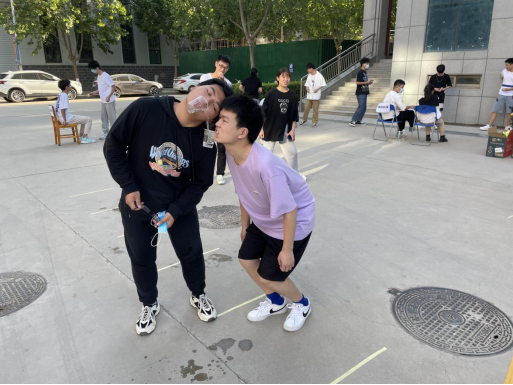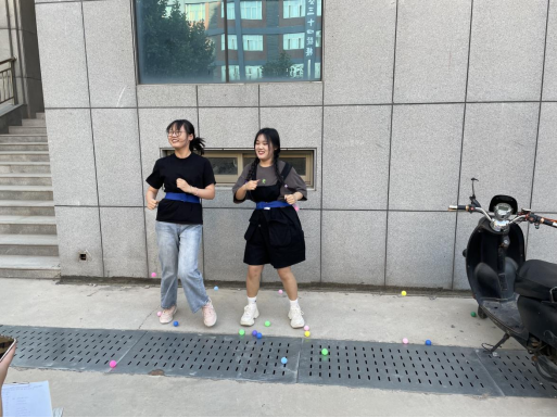 活动在下午五点正式开始,同学们积极参与活动。“双人成行”活动设置了“球不落地”、“夹球前进”、“纸杯传水”、“腰部抖球”和“盲吃水果”5个趣味挑战游戏。