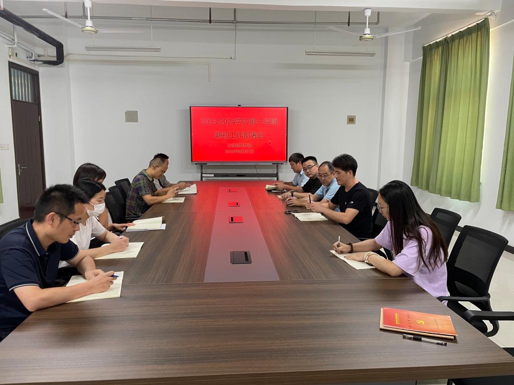 2023年8月31日,交通管理学院在会议室召开新学期期初工作部署会,学院全体教职工参加了会议,会议由教学秘书丁向育主持。