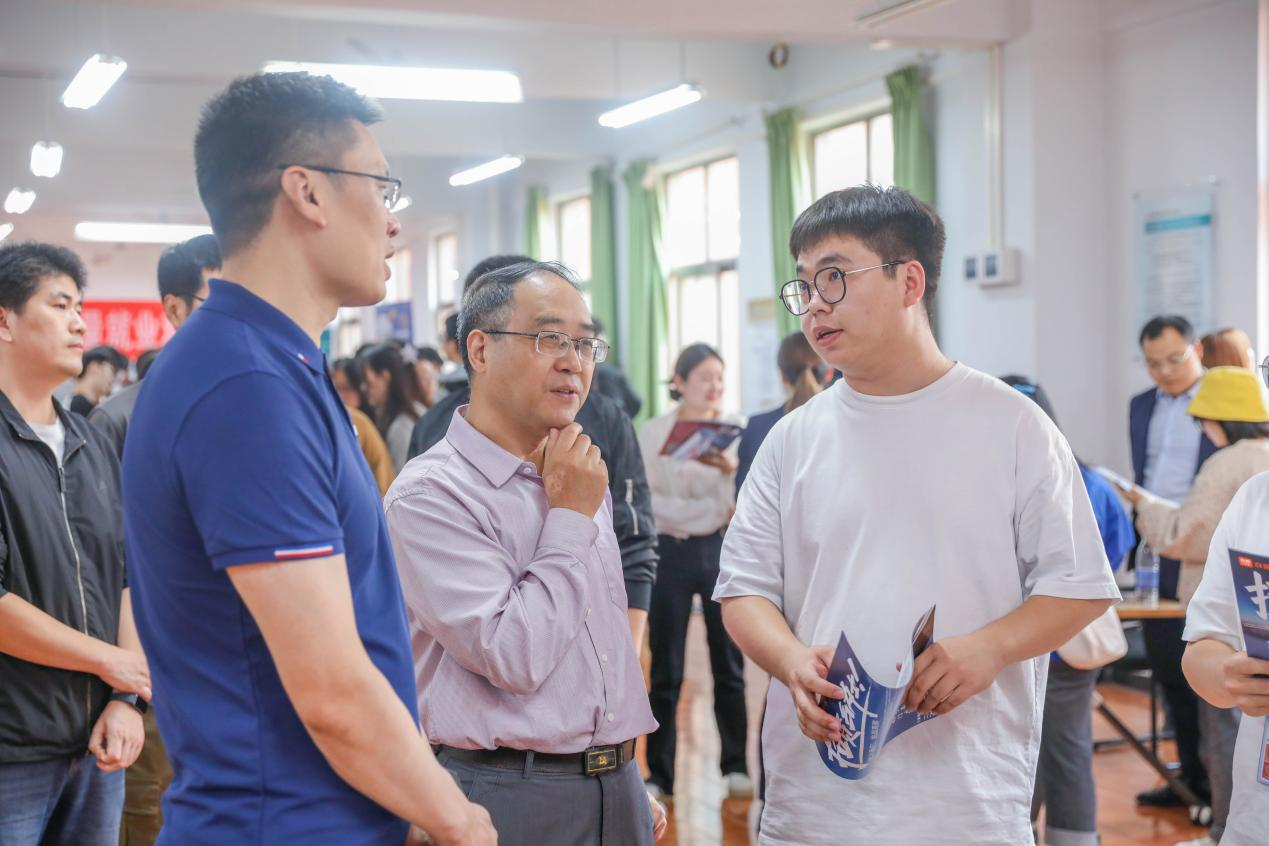 在双选会现场,冯科处长与招聘单位负责人亲切交谈,详细了解招聘单位专业需求、岗位需求和薪资待遇等情况;张三川院长同到场的毕业生亲切交谈,了解求职意向和签约情况,叮嘱他们要树立正确就业观和择业观,尽快找准定位,早日实现就业。