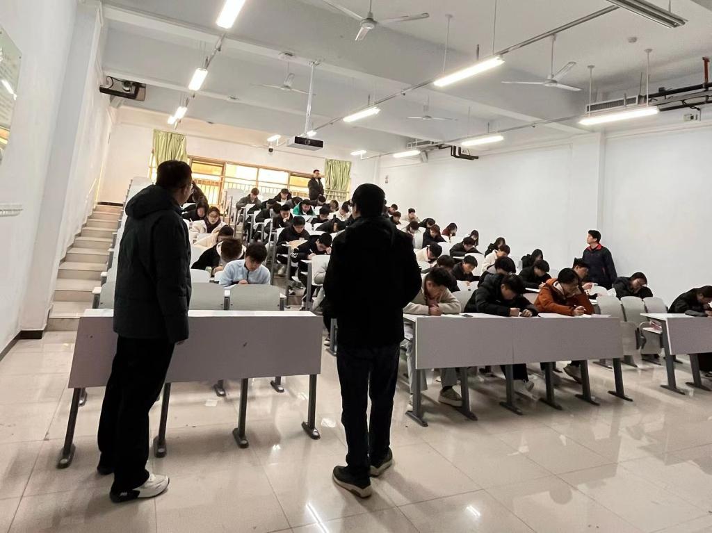 1月8日,我校2023-2024学年第一学期期末考试拉开帷幕。为进一步加强期末考试组织管理,严肃考风考纪,期末考试期间,机电学院直属党支部书记陶金仓、行政秘书朱帅、教学秘书丁向育深入期末考试现场开展巡视检查工作。
