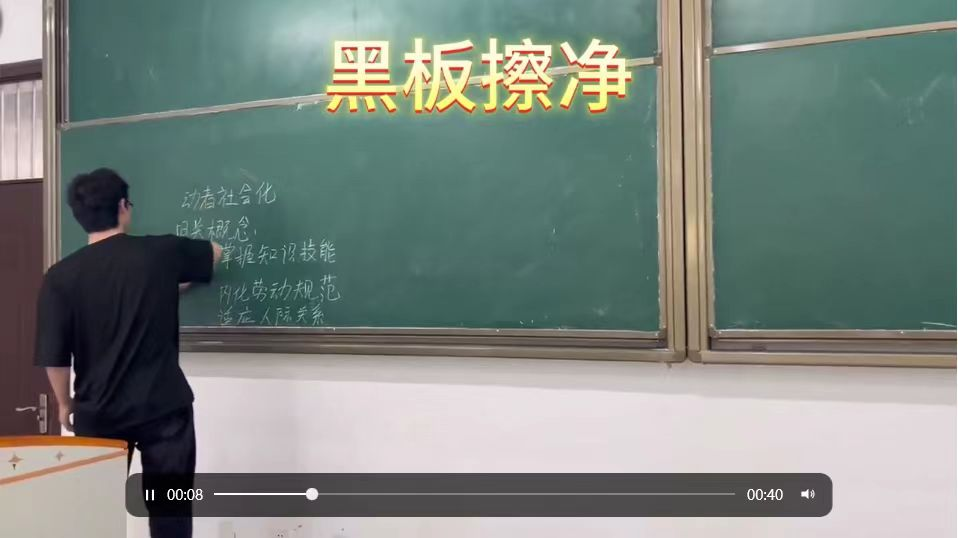 活动期间,各班积极响应号召,根据学校和学院要求,组织召开“劳动教育月”主题班会。会中,各班向同学们传达了本次活动的主题、时间、具体内容、日程安排等,使学生领悟劳动的价值和意义,并呼吁学生积极参与到活动中去。同时,为了促进学生养成良好的劳动习惯和品质,机电学院学生还集聚创意,共同拍摄了劳动教育宣传短视频,以更加生动形象的方式,引导大家及时打扫公区和责任教室卫生、定时进行宿舍内务整理,投身劳动实践,提升劳动素养。