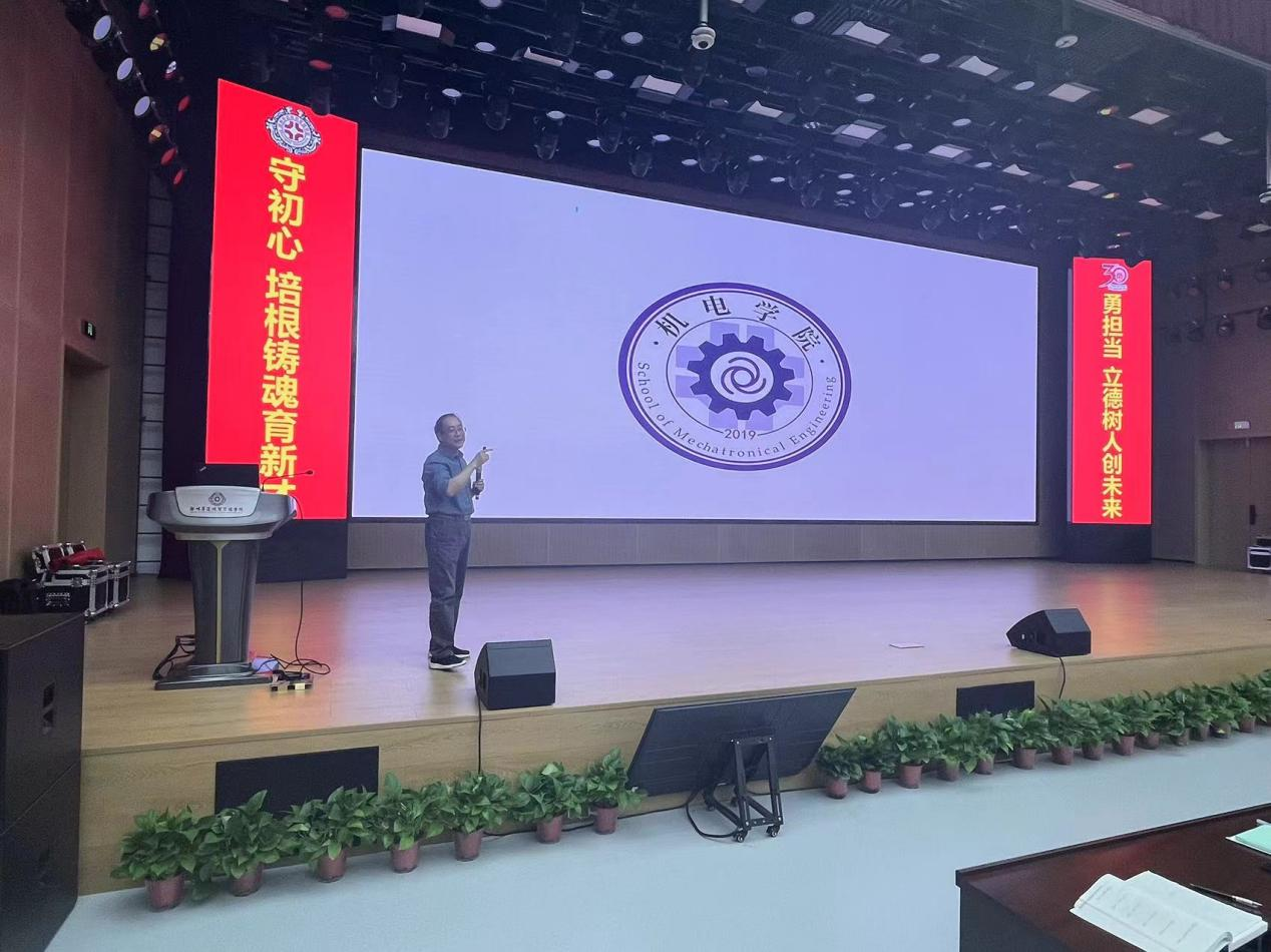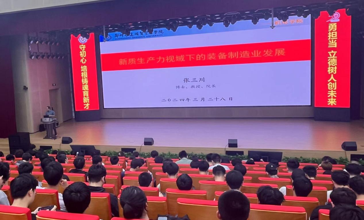 4月29日,机电学院院长张三川在新图书馆三楼报告厅为学院学生讲授春季开学思政第一课。