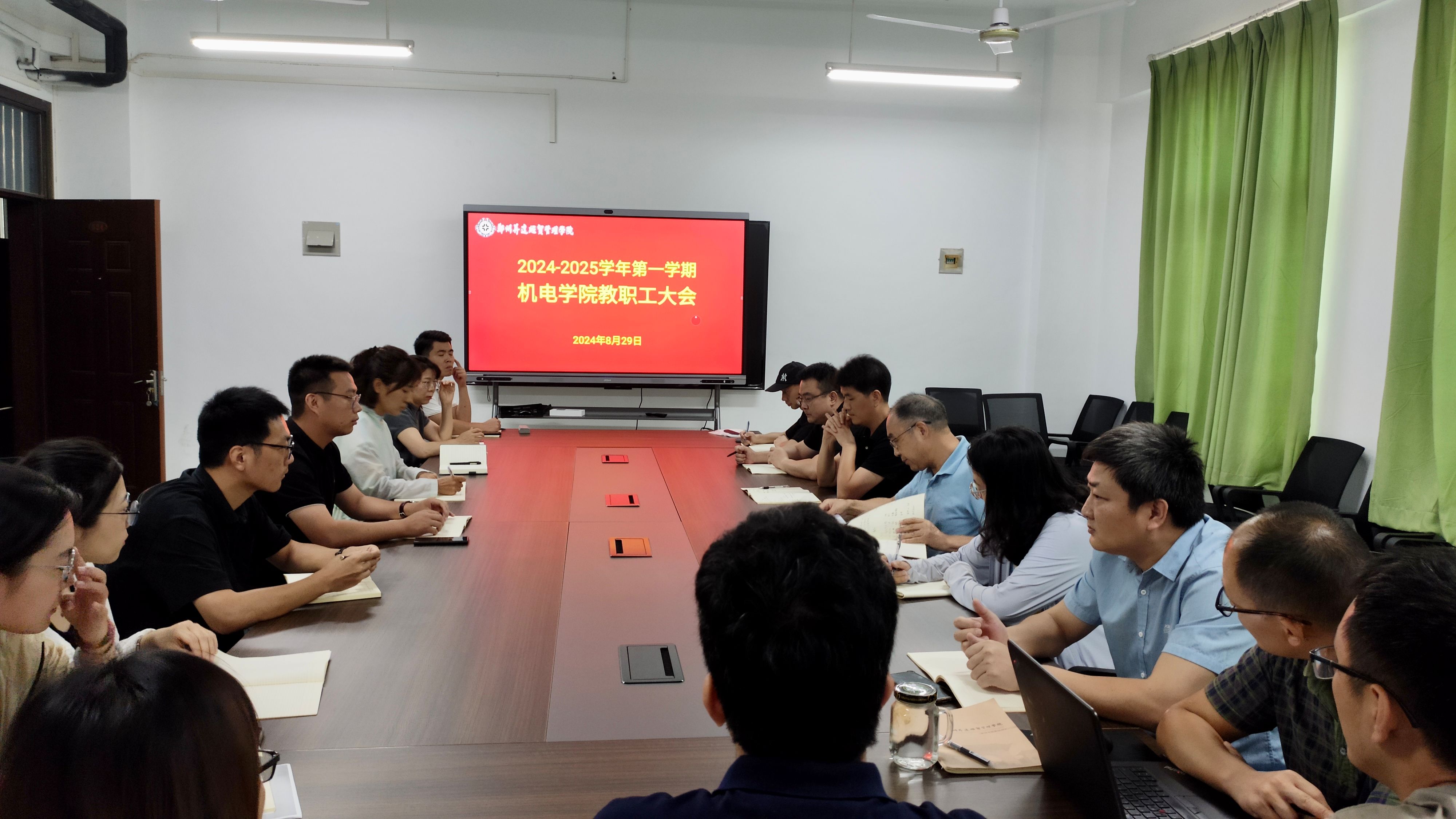 2024年8月29日下午,机电学院在会议室召开2024-2025学年第一学期全体教职工大会。机电学院全体教职职工参加了会议,会议由教学秘书李灵焕主持。