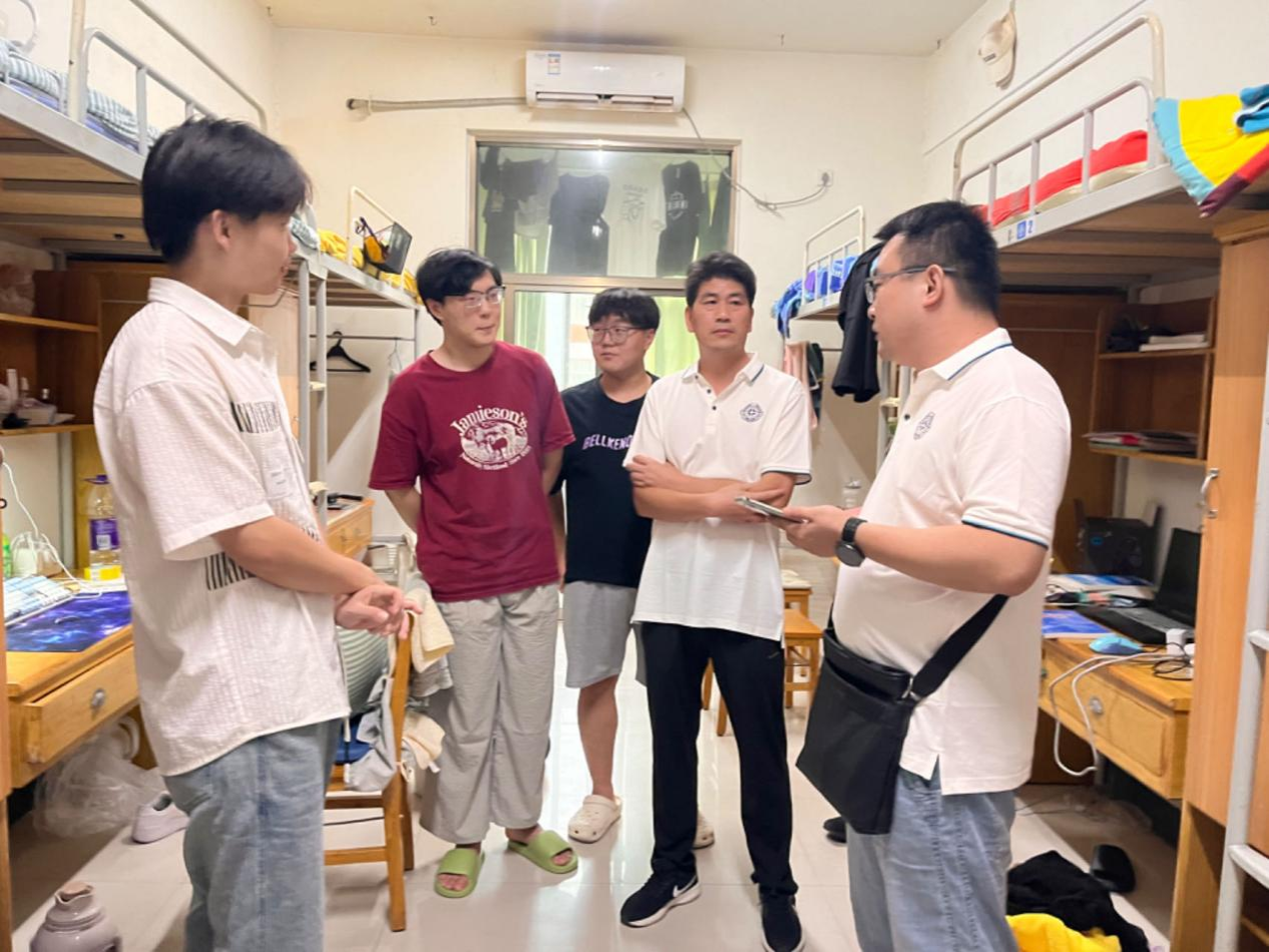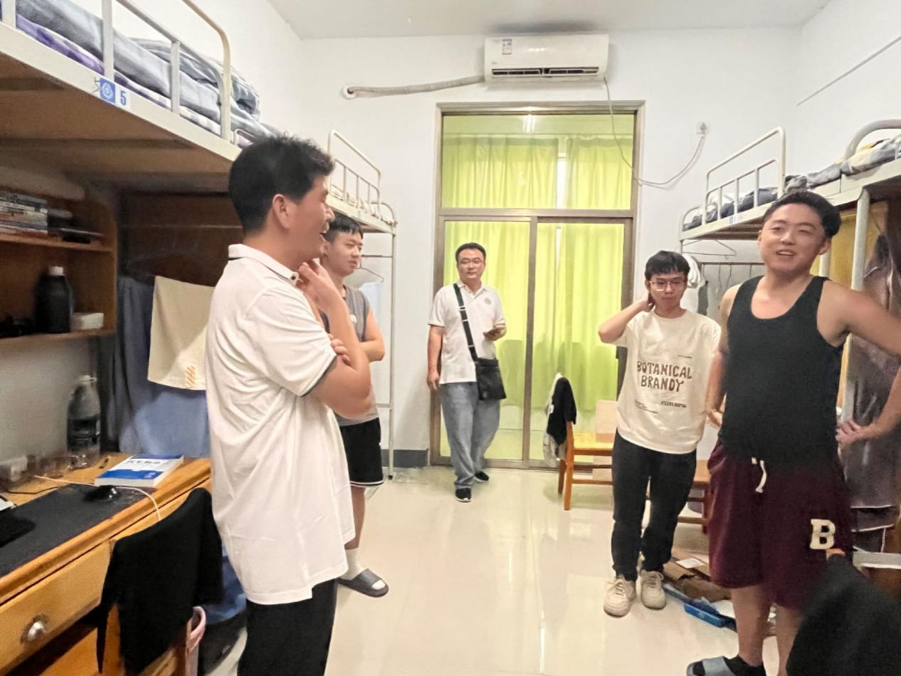 为了解2024级新生的生活情况、思想动态和新生在学习和生活中遇到的困难,及时为他们提供帮助和指导,9月3日晚,机电学院党委书记丁向育、行政秘书朱帅及全体新生辅导员深入宿舍看望2024级新生。