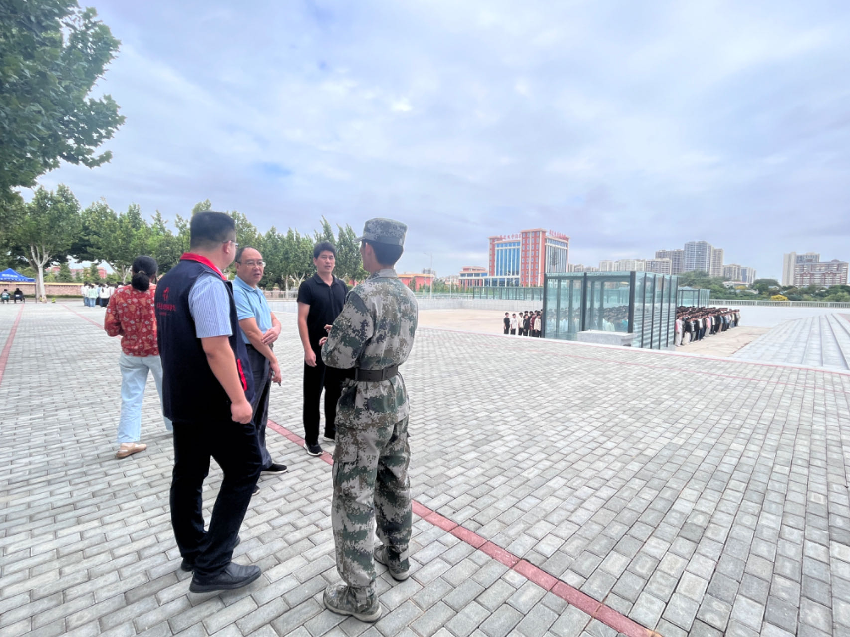 在军训现场,教官向领导一行汇报了军训开展情况,领导一行对全体教官在训练过程中展现出的严谨作风和坚韧不拔的优良品质给予了高度评价,并向全体教官致以崇高的敬意和诚挚的感谢。