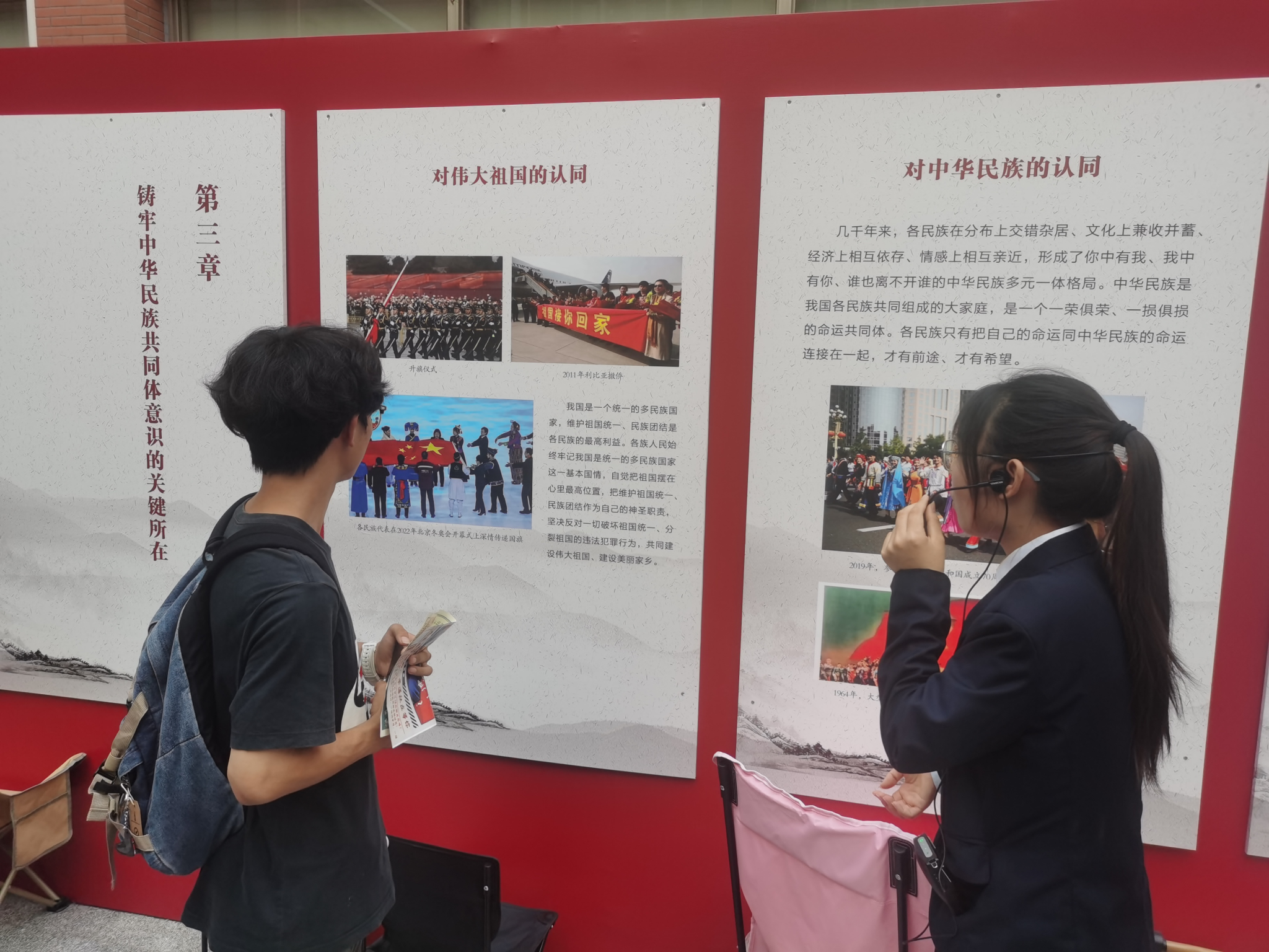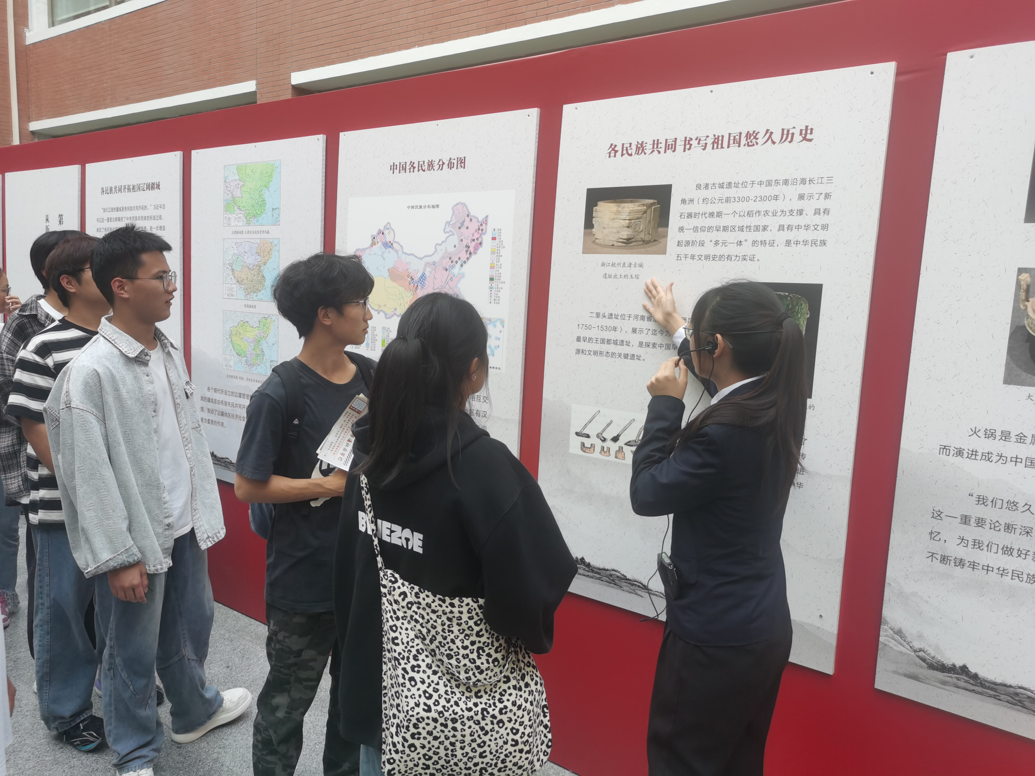 主题展分为六个章节:从历史中走来的中华民族、中华民族共同体的形成与发展、铸牢中华民族共同体意识的关键所在、中华民族共同体意识的具体实践、新时代党的民族工作的根本遵循及升达经贸管理学院简介和统战工作剪影。通过丰富的图文资料及讲解员悉心讲解,让新生们深刻感受到了中华民族共同体的强大凝聚力和向心力。