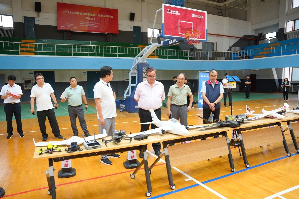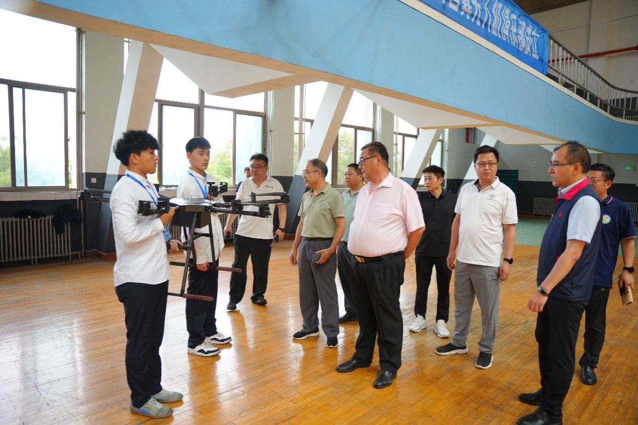 董事长王新奇参观了御风飞行(河南)航天科技有限公司展示的各种无人机和飞行设备,并耐心询问其功能和用途。