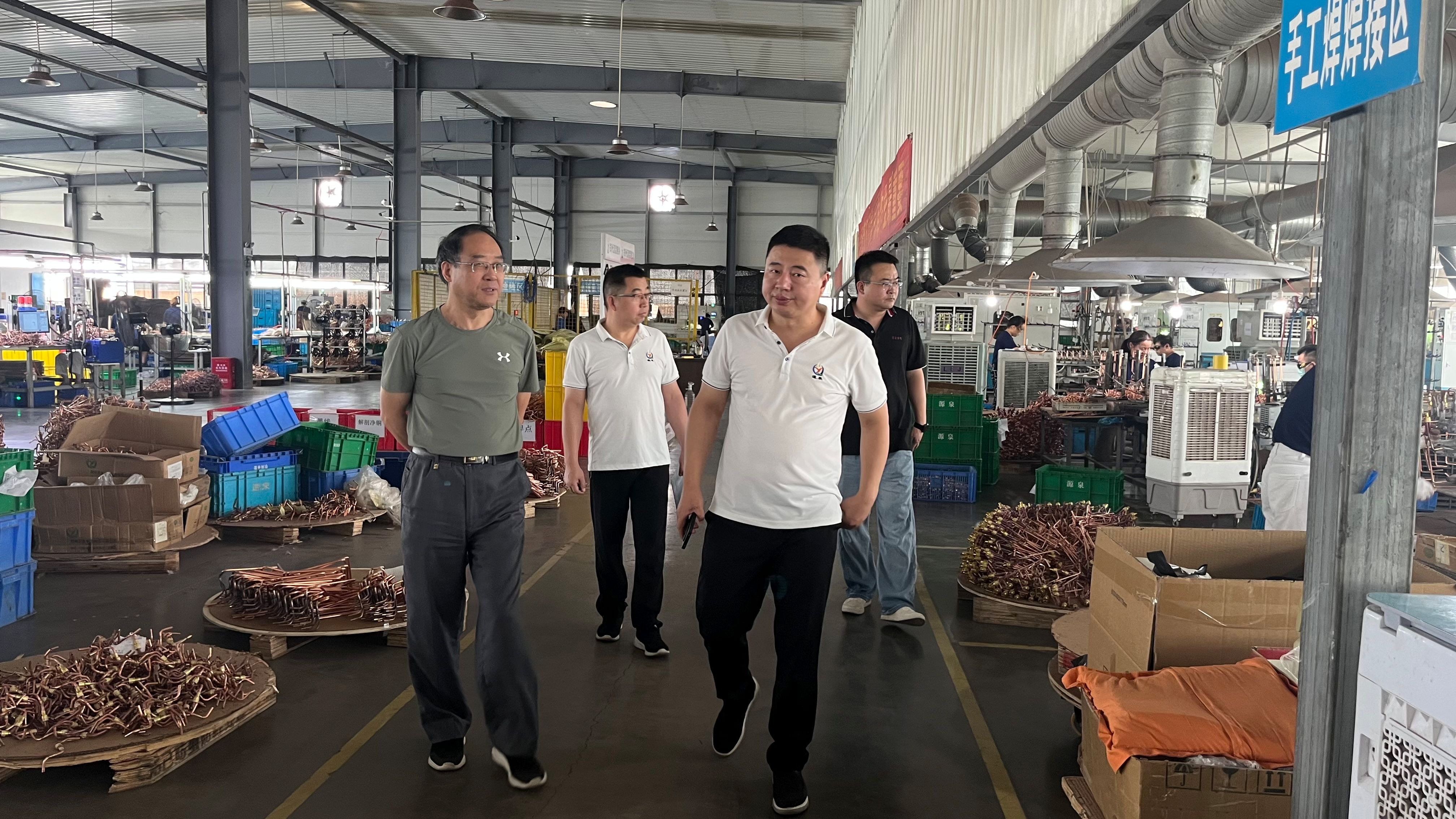 郑州源泉制冷科技有限公司负责人王保良简要介绍了公司的成长历程、业务范围、企业面临的痛点问题等,并带领参访一行参观了其生产车间及产品制作工艺。