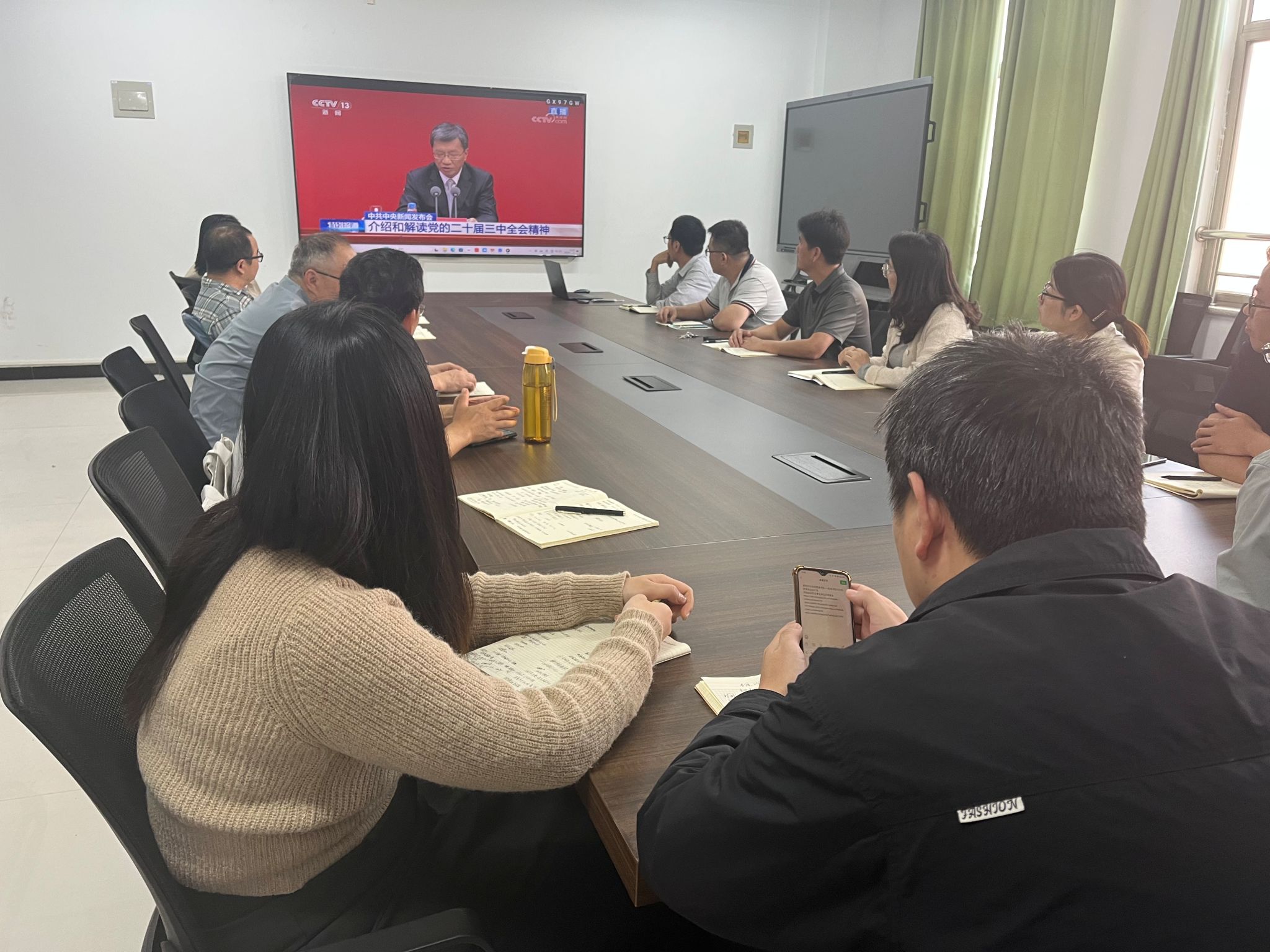 党委书记丁向育带领大家学习了《中共中央关于进一步全面深化改革、推进中国式现代化的决定》(以下简称《决定》)第四部分“构建支持全面创新体制机制”内容,并组织大家观看了教育部党组书记、部长怀进鹏关于教育、科技、人才、创新等领域改革的解读视频。同时,他要求大家会后自学《决定》剩余部分内容,各支部要开展党的二十届三中全会主题教育党日活动。