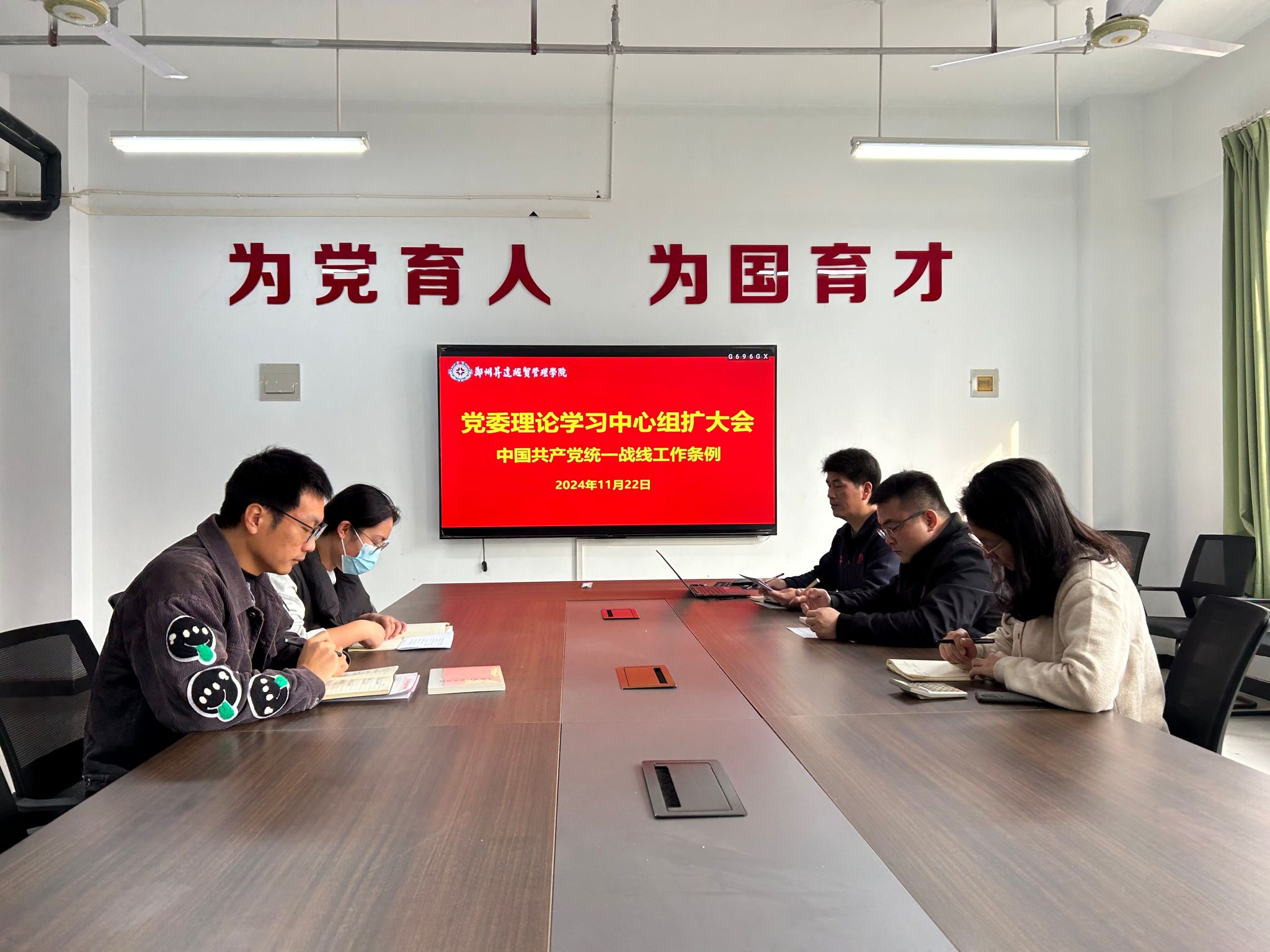 为深入学习贯彻《中国共产党统一战线工作条例》,推动学院统战工作高质量发展,11月22日,机电学院在院会议室召开党委理论学习中心组学习研讨会,党委中心组成员参加会议。会议由院党委书记丁向育主持。
