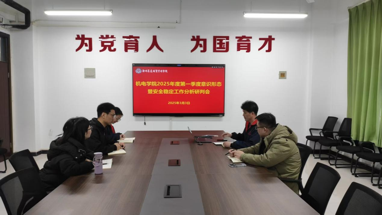2025年3月3日,机电学院在实训大楼524会议室召开2025年度第一季度意识形态暨安全稳定工作分析研判会。会议由学院党委书记丁向育主持,全体党委委员参加。