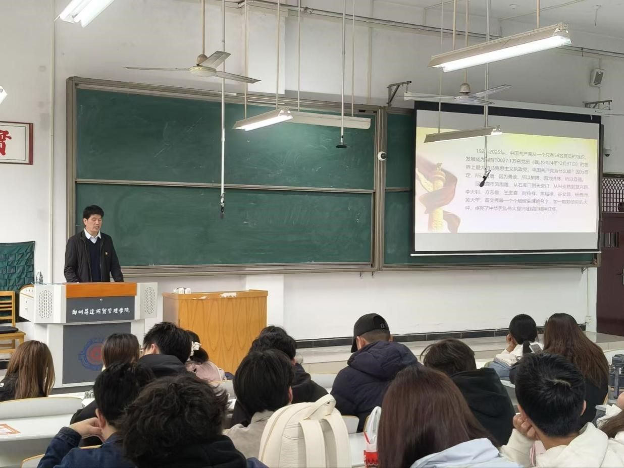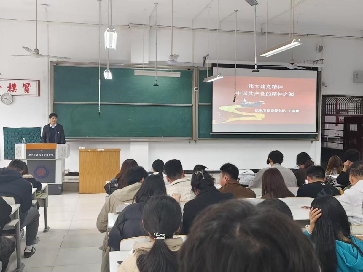 10月24日中午,机电学院党委书记丁向育以《伟大建党精神:中国共产党的精神之源》为题,在时金楼116教室为管理学院、机电学院、体育学院第22期党课学员讲授党课。