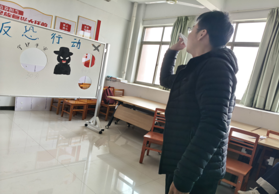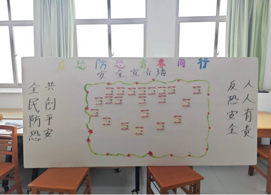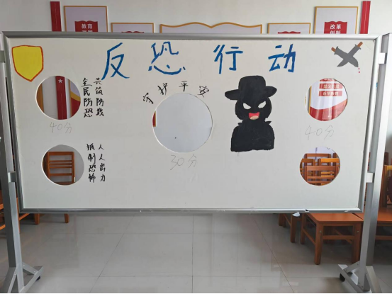 活动设置三大环节:“标语创作”中,同学们在便签纸上写下“反恐无小事,安全记心间”“青春不涉恐,校园共守护”等醒目标语,张贴成“防恐宣言墙”;“知识竞答”环节通过选择题实时考验防恐常识,参与者答题后可自己折叠纸飞机,投入对应“安全洞口”兑换积分,寓教于乐。
